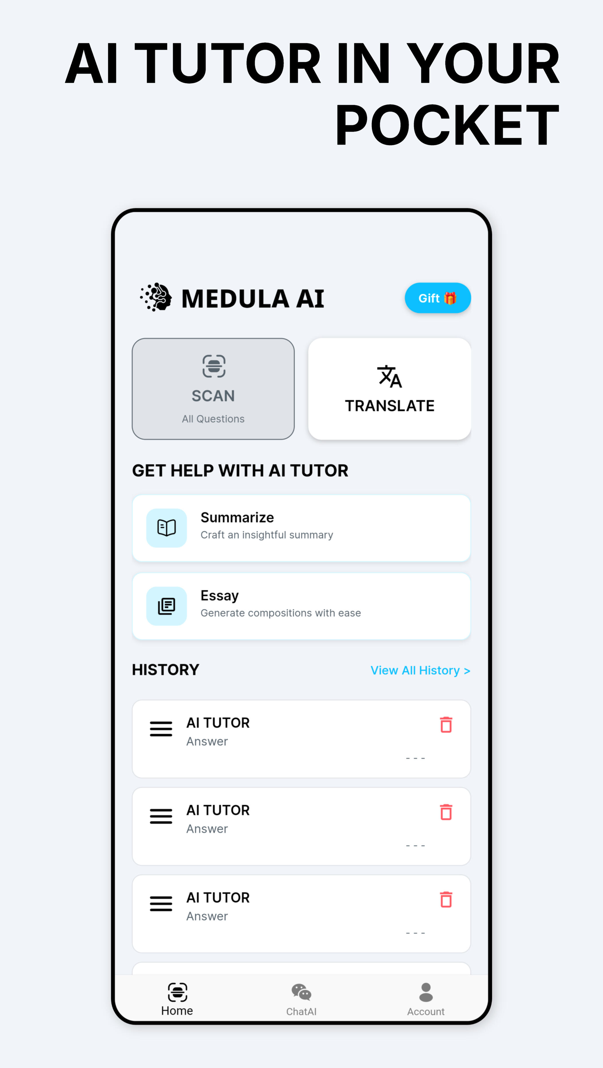 MEDULA AI is your 24/7 study companion that explains concepts, solves problems, and helps you master any subject at your own pace. It’s like having a personal tutor in your pocket — always ready to help.